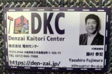 名刺にDKCと大きく記載されているが、電材センターのマスッコト「電材店長」のエプロンにDKCと記載しているところから始まった様です。マスコットキャラクター「電材店長」は、元ワイキューブの安田さんが、ラ…