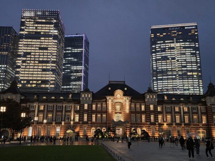 東京駅丸の内出口を出るとスマホで撮影をしている人が多く