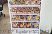 只今、本社にカップラーメン専門棚を置いております。これは日清さんで10万円分購入で、先着500名で貰える棚です。床に箱で積んでいる時とは違い、お店の様に手軽に選べるので人気です。もちろん、福利厚生で置いておりますので誰でも無…